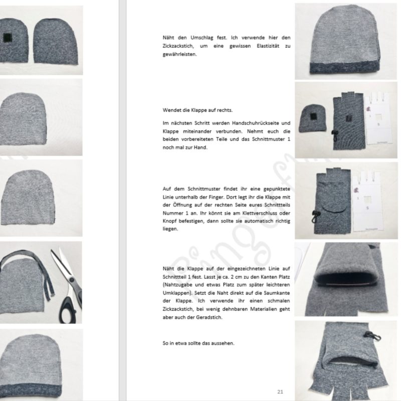 Nähanleitung und Schnittmuster für Handschuhe mit halben Fingern und Klappe. 8 Größen, passend ab Kindergartenalter. Viele Varianten möglich!