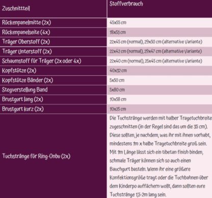 Wie alle Fluff-Schnitte ein super übersichtliches und durchdachtes Ebook, mit dem man/frau sich eine hübsche, sichere und bequeme Rückentrage nähen kann.