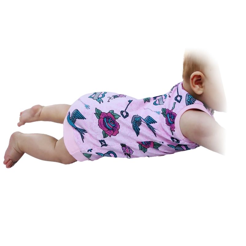 Das Schnittmuster enthält eine Erweiterung, mit dem das normale Unterhemd zum Vokuhila-Unterhemd verwandelt wird. Diese Variante eignet sich ganz wunderbar statt Body als Ergänzung für eure windelfrei Ausstattung. Popo und Beinchen sind etwas bedeckt und das Abhalten gelingt trotzdem stressfrei. Die Vokuhila Variante macht sich auch für die Großen toll als längeres Top, welches den Po etwas bedeckt. flunterhemd trägt sich damit auch prima als Sommertop zu Leggings.