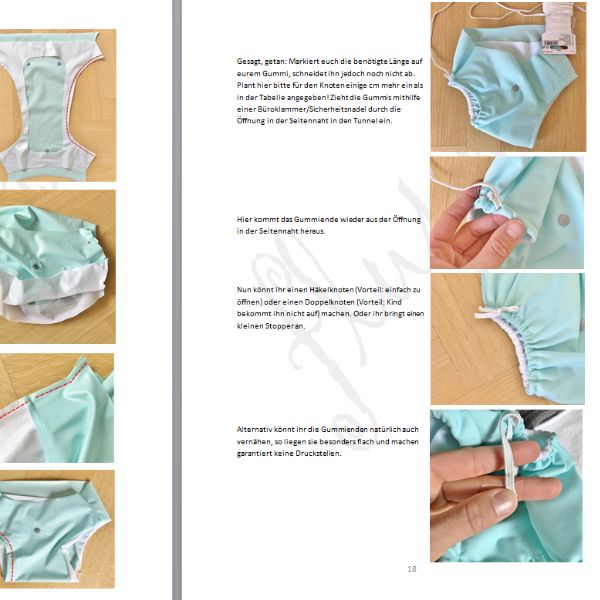 Und weil wir hier im fluff store sind und ich mich nie auf eine Variante festlegen kann, gibt es flupp in diversen Variationsmöglichkeiten: Als All-in-one-Stoffwindel mit eingenähtem Saugmaterial, als Prefoldüberhose, in die man Mullis etc. einfach einlegen kann, als Pocketwindel zum Stopfen oder als Snap-in-One-Lösung mit einknöpfbaren Einlagen. Darüber hinaus sind im eBook mehrere Varianten für die Beinausschnitte beschrieben: herkömmliche Bündchenlösungen mittels einfachem Gummitunnel, Beinausschnitte mit einem verstellbaren Gummi und Bündchen aus Fleece oder Wolle. A propos Wolle: Natürlich könnt ihr flupp sowohl aus PUL als auch aus Wollstoffen nähen. Die jeweiligen Vor- und Nachteile sind im eBook kurz aufgeführt.