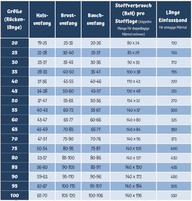 Schnittmuster in 17 GrĂśĂen und Nähanleitung fĂźr einen Hundemantel