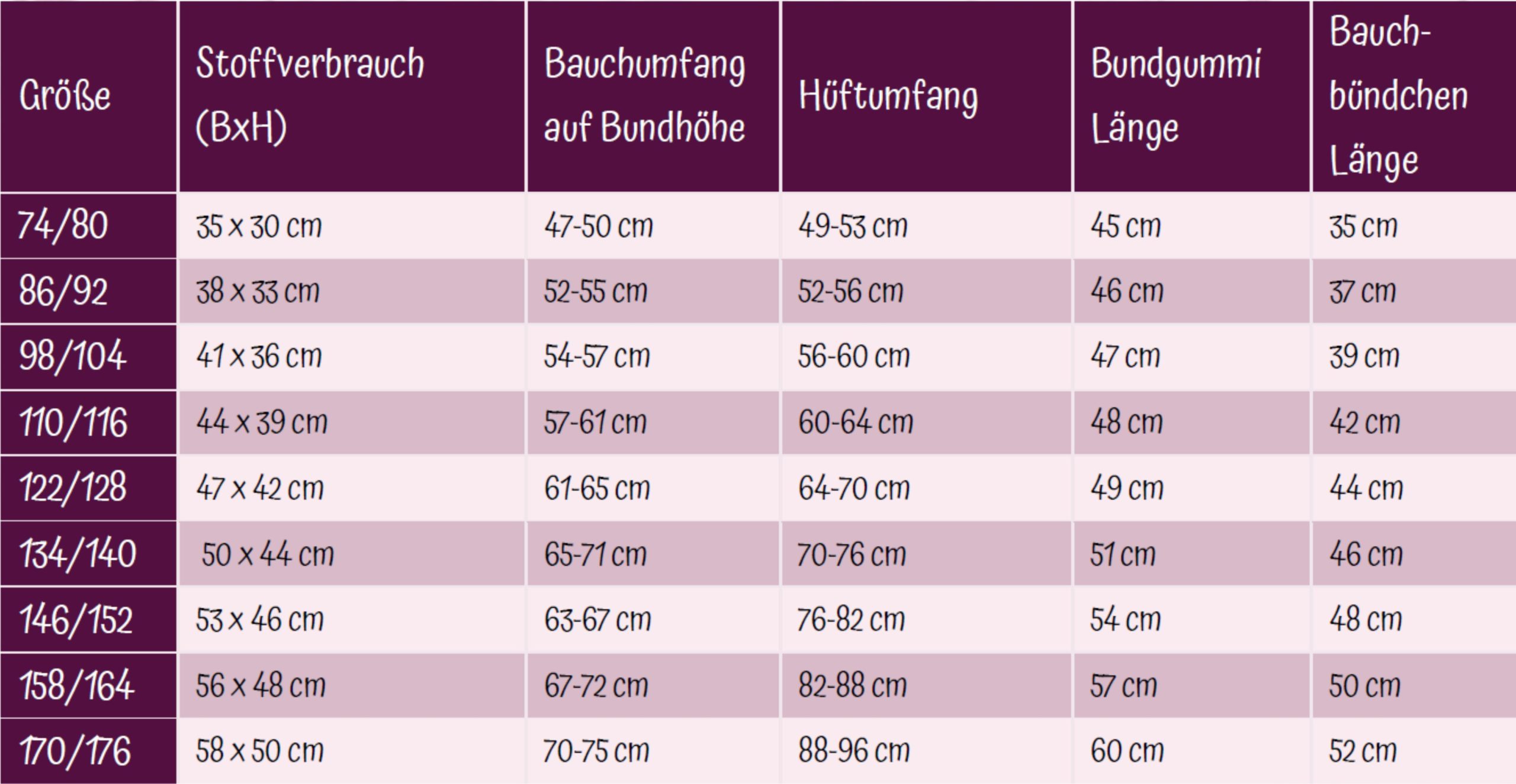 Schnittmuster und Nähanleitung für eine Mädchenunterhose in Größe 74/80 bis 170/176