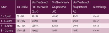 - Als äußere Schicht: Entweder PUL Stoff oder einen nicht zu dehnbaren Wollstoff. Ihr dürft gerne alte Wollstoffe upcyclen, lest hierzu bitte die Woopcycling Datei. Werbung: Richtig tollen, weichen, teilweise sogar recycleten PUL Stoff gibt es bei der Stoffwindelei.