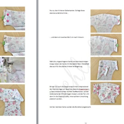 Das eBook wurde komplett überarbeitet, neu strukturiert und verschiedene Arbeitsabläufe wurden vereinfacht und optimiert. Es beschreibt ausführlich vier Varianten der schluff: Die einfache PUL-Überhose, die PUL-Überhose zum Aufknöpfen, die Schlupfvariante mit Dekostoff und die Knöpfvariante mit Dekostoff. Alle Varianten wurden im Probenähen erprobt und sind zuverlässig dicht – auch über Nachtwindeln.