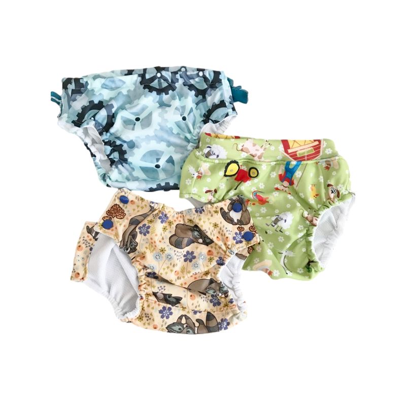 Wenn Du dich langsam etwas sicherer im Windelnähen fühlst, kannst Du dich an einer Überhose aus PUL ausprobieren. Da jeder Nadelstich ein kleines Loch in der Laminierung des Stoffs hinterlässt, welches zu Undichtigkeit der Windel führen kann, ist hierbei besonders sauberes Arbeiten erforderlich.